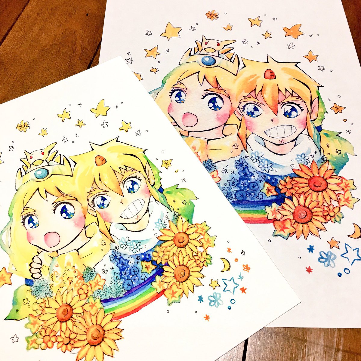 虎ちゃん翔ちゃんおめでとう🎂🎉✨ ギリのギリでおまつりに便乗して〜過去絵しかも本に収録した絵で恐縮ですが……! 1枚目はたしか原画と印刷したのを並べたもので2枚目は主線を入れる前のものです〜 #虎王誕生祭2022 #翔龍子誕生祭2022