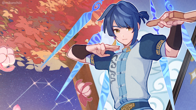 遅刻かましましたおめでとう!!!!!!🎉🎉🎉 初期からお世話になってる思い出の子です!!! #原神 #GenshinImpact #Xingqiu #行秋生誕祭2022 #行秋誕生祭2022