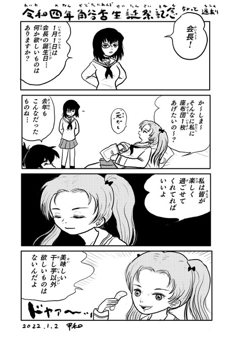 happy♥️birthday♥️角谷杏会長 誕生日おめでとうございます。 HAPPY NEW YEAR 新年明けましておめでとうございます。 去年は四コマ漫画ばかり描いて、競馬・パチンコ・麻雀ができなかったな~ 今年は金杯やりたいな~ #角谷杏生誕祭2022 #角谷杏生誕祭 #角谷杏生誕日