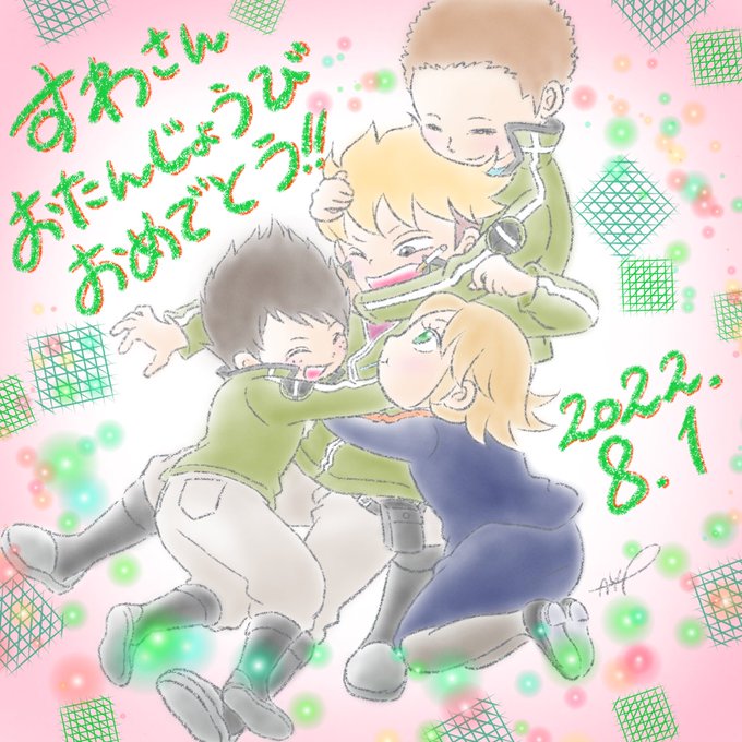 諏訪さんお誕生日おめでとうございます🎉✨✨ 21歳組とエネドラッドに祝って(?)もらってるイメージで🤗諏訪さん、私の上司になって💚💚 #諏訪洸太郎生誕祭2022 #諏訪洸太郎誕生祭2022
