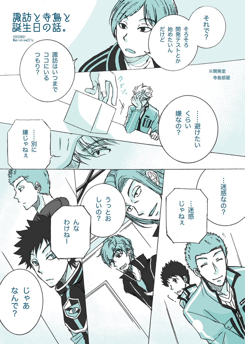 ■諏訪と寺島と誕生日の話。 夏休み生まれの祝われ慣れていない諏訪さんが寺島の前でグダグダしてからいつもの外ヅラ被ろうとしていたら、クソな目にあった話(みんなに慕われ諏訪さん)。 #諏訪洸太郎誕生祭2022