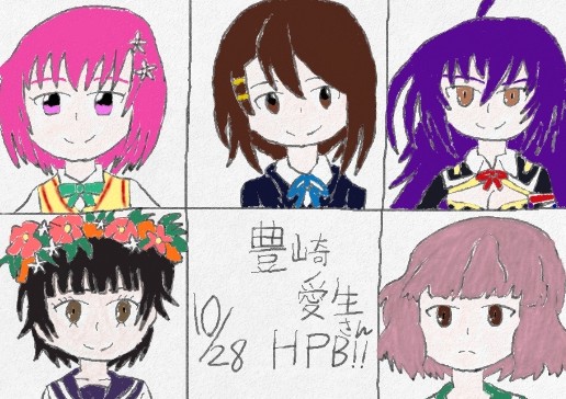 本日は声優の豊崎愛生さんの 誕生日ですので、 記念イラストを書きました! 書いたキャラは モモ、平沢唯、黒神めだか、 初春飾利、環凛子になります。 おめでとうございます!! #豊崎愛生生誕祭2022 #イラスト