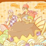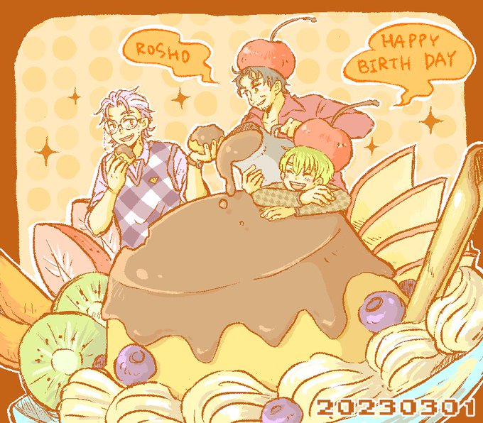 🎋「スペシャルプレゼント!特大プリンアラモード チェリーを添えて…美味しく食べてやぁ!」 0️⃣「カラメルつゆだく入りまーす」 👨🏫「おぉっありがとな!食いきれへんから皆んなで食べよな!チェリーは大事に取っとくわ😁✨」 盧笙誕生日おめでとう🎂 #躑躅森盧笙生誕祭2023 #躑躅森盧笙誕生祭2023