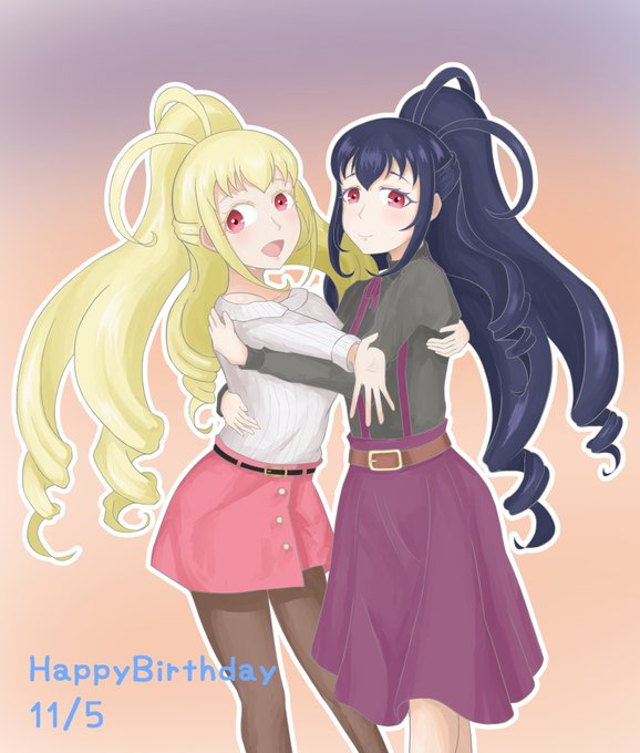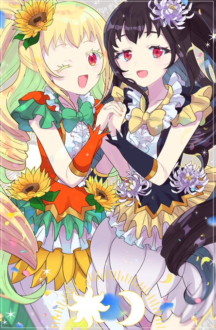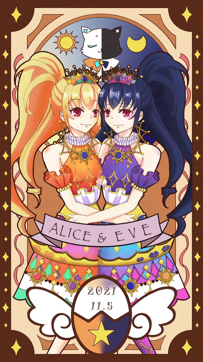 アリスとイブ、お誕生日おめでとう〜!!🎉 プリチャン3期で登場した似てるけど関わりのなかった2人。そんな2人が双子だと判明して運命の再会を果たしてチームを組んで、、、ソルルとルルナはいないけれど、でも4人の心はきっと1つ!☀️🌙 本当におめでとう! #輝アリス生誕祭2021 #輝イブ生誕祭2021