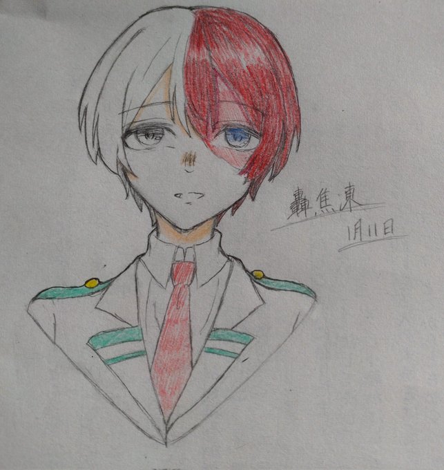 遅刻したけど轟くん誕生日おめでとう(*^^*) 授業中とかに描いてたやつなので,デジタルではない( ˙-˙ ) #轟焦凍誕生祭2023 #轟焦凍生誕祭2023 #イラスト #アナログイラスト
