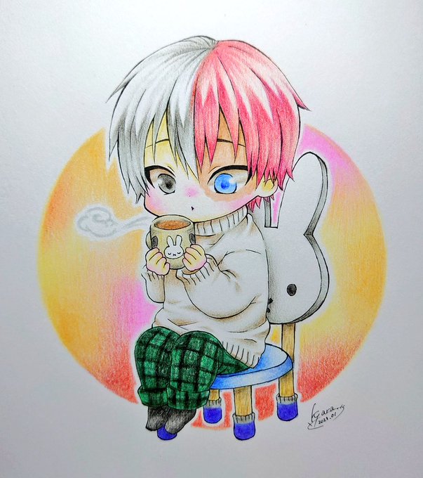 大遅刻です🤤← 轟くん、誕生日おめでとう🎂🎉 自分がココア飲みたかったから、轟くんにふーふーさせてみた(笑) フィルタかけると色味飛ぶので明るさだけ加工💦 其れでも色味飛んでる··· 私のスマホ画質悪いஇ #轟焦凍 #轟焦凍生誕祭2023 #轟焦凍誕生祭2023 #色鉛筆 #アナログ