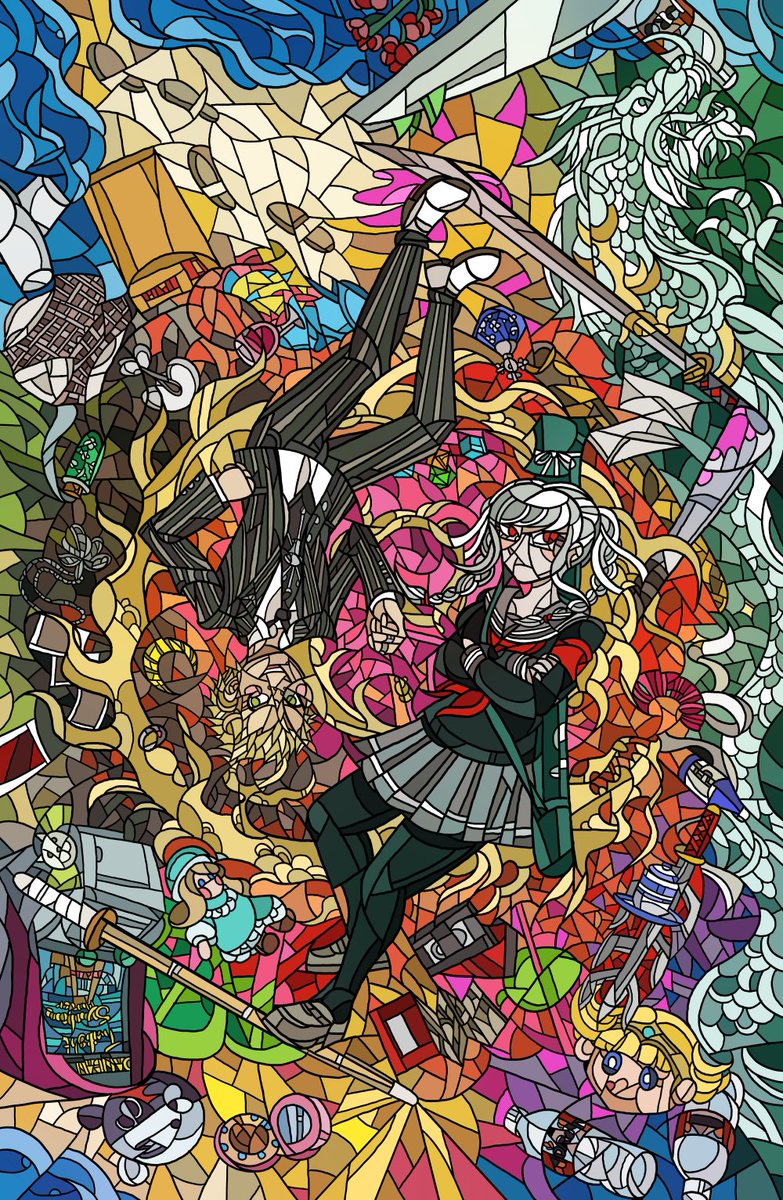 [DANGANRONPA 2 SPOILERS] It's Peko's birthday, so I thought I'd finally share my page from the @fuyupekozine ft Fuyuhiko & Peko in a reversible mosaic! Usually I do my DR pieces like this solo character, but this one was fun. #辺古山ペコ生誕祭2023 #辺古山ペコ誕生祭2023