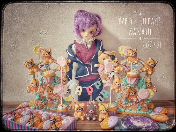 沢山の甘味と優しい気持ちに囲まれた、素敵な時間をこれからも過ごせますように。今日は思う存分お菓子を食べてくださいね。 カナトくん、お誕生日おめでとうございます👑💜 #逆巻カナト生誕祭2022
