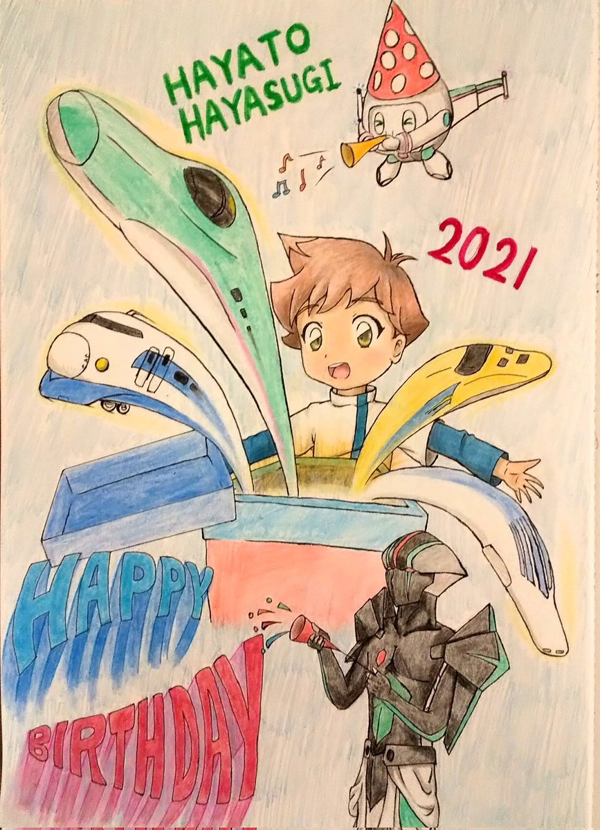 ハヤトくんおめでとう!!Happy Birthday!! イラスト描きましたー(どちらもクロス合体のやつ シンカリオンZでは最終回辺りにでそうだね #シンカリオンZ #シンカリオン #速杉ハヤト #ハヤトバースデー2021 #速杉ハヤト誕生祭2021 #イラスト