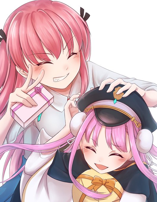 #逢川めぐみ生誕祭2022 #國見タマ生誕祭2022 「おい、タマぁ!」 「は、はいぃ!」 「ケーキは半分こや」 「!!…はい……!」 間に合わず同時に祝う事になりすみません😭めぐみんは当日祝われないと不服そうだな😹 ふたりとも大好きなキャラクターです! #ヘブバン #hvbnFA #ヘブバンファンアート