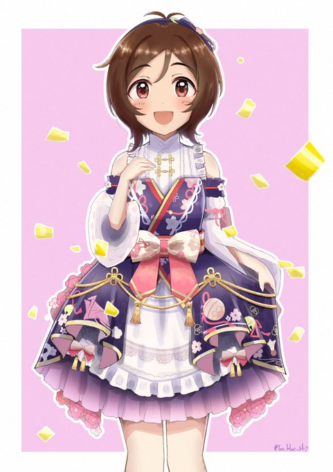 はわわカワイイ歌鈴ちゃん、お誕生日おめでとうございます♪ 先日可愛らしいMVも実装、今年も満願成就ですね♪ ここはやっぱりインディゴ・ベルの二人&同誕の茄子さんとー📸 #道明寺歌鈴生誕祭2022 #道明寺歌鈴誕生祭2022 #高森藍子 #鷹富士茄子