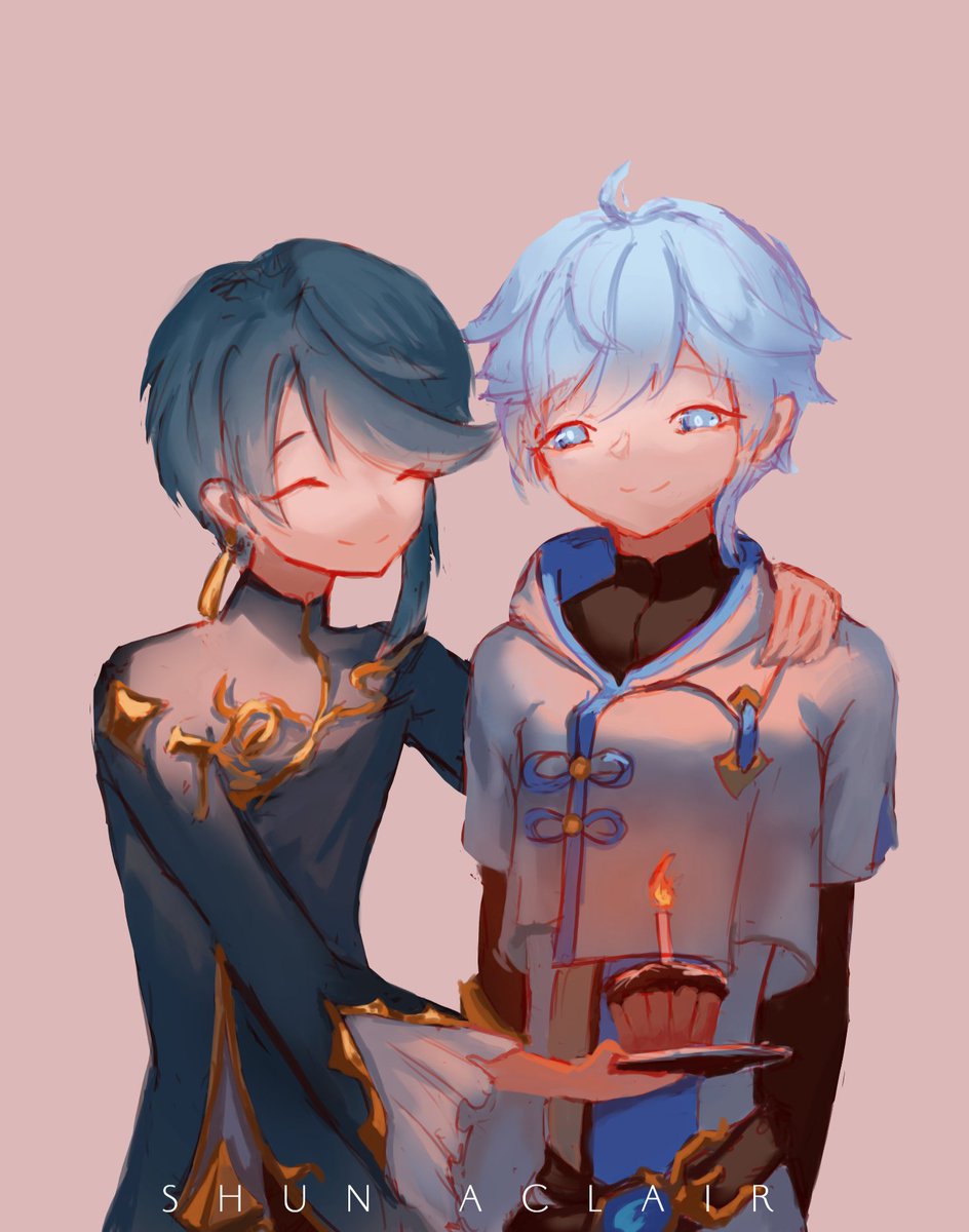 Happy birthday to razor and belated happy birthday to chongyun 💜💙 #レザー生誕祭2021 #重雲生誕祭2021 #原神 #rkgk