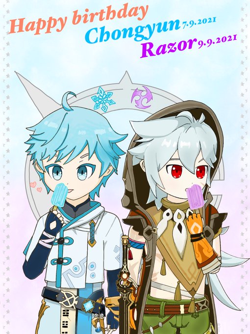 Happy birthday to my favorite boy razor and happy belated birthday to Chongyun! 🥳their bdays are so near so I put them together lol Sharing popsicles~ can I have one too~? #GenshinImpact #genshinimpactfanart #原神 #Chongyun #razorgenshinimpact #レザー生誕祭2021 #重雲誕生祭2021