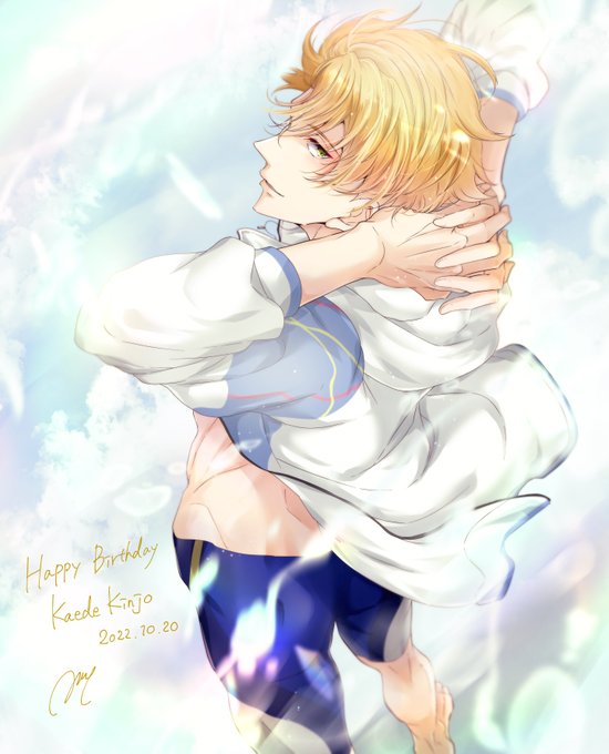 金城楓くんお誕生日おめでとう💛🧡素直じゃないけど思いやりが深くて優しい君が大好き🍁一緒に泳げて良かった…🏊♂️🥇今日は皆にお祝いされてるかな🎉(渚企画パーティー)楓BDアクスタ欲しい〜の気持ちを込めて描きました🎨金木犀の花冠🌼とけもの🐈 #金城楓生誕祭2022 #金城楓誕生祭2022 #Free_Birthday