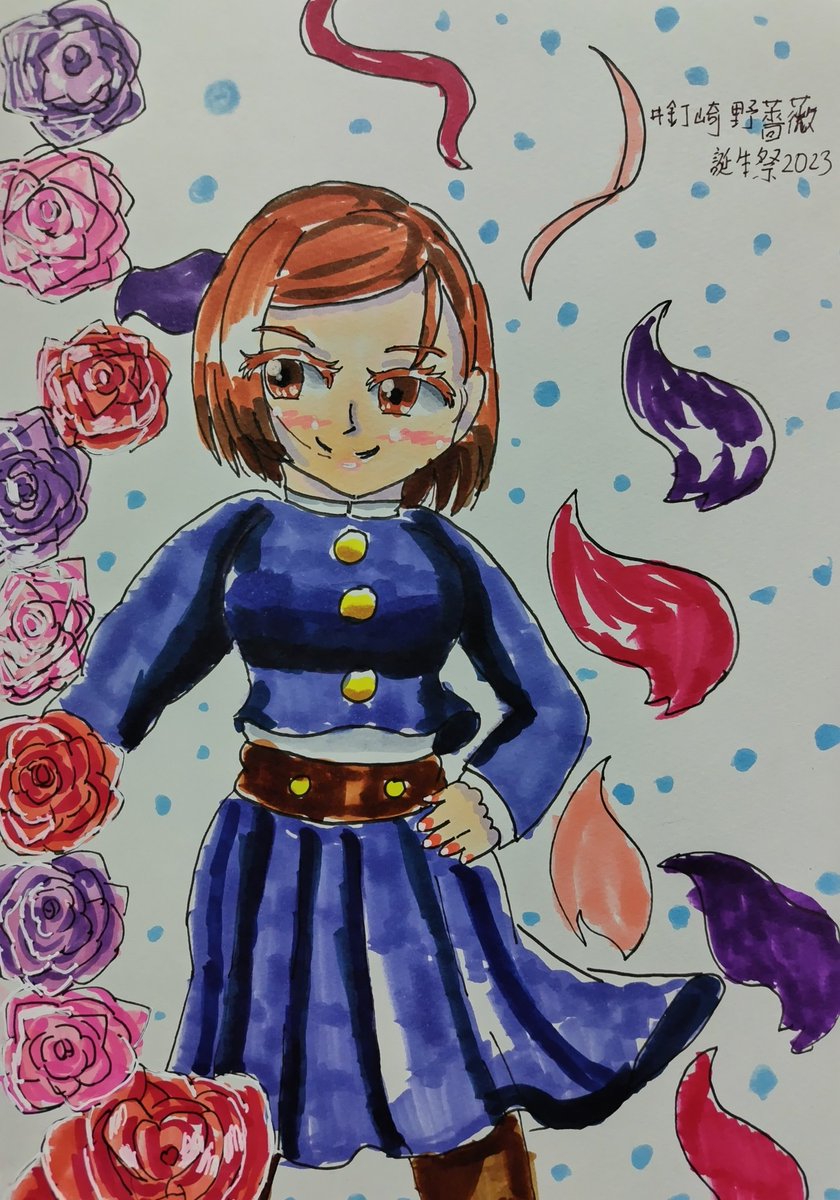 #呪術廻戦ファンアート #釘崎野薔薇生誕祭2023 #釘崎野薔薇誕生祭2023 お誕生日おめでとう🎉🎂 🍰🍴Happy Birthday🎂✨ 自分らしく生きるのばら🌹ちゃん 凄く素敵だよ✨✨ これからの活躍を楽しみにしてます🥰