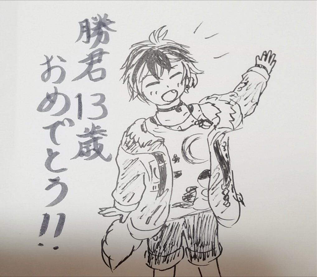 勝くんお誕生日おめでとう☆.。.:*・° 修正したら遅刻しました߹ᯅ߹ #鈴木勝誕生祭2022 #漆黒の水鏡 #イラスト好きな人と繋がりたい #初イラスト #中学生絵師さんと繋がりたい #絵師さんフォロバ100