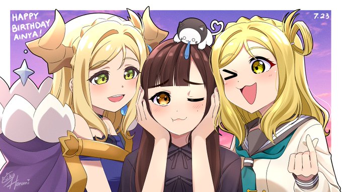 お誕生日おめでとうございます🎊 これからも愛奈ちゃんが健康に過ごせますように😌 今年は愛奈ちゃんが務めてるキャラクターたち(金髪ズ)にお祝いしてもらいました💪 これからもずっと、だいすきです #鈴木愛奈生誕祭2023