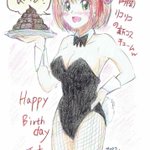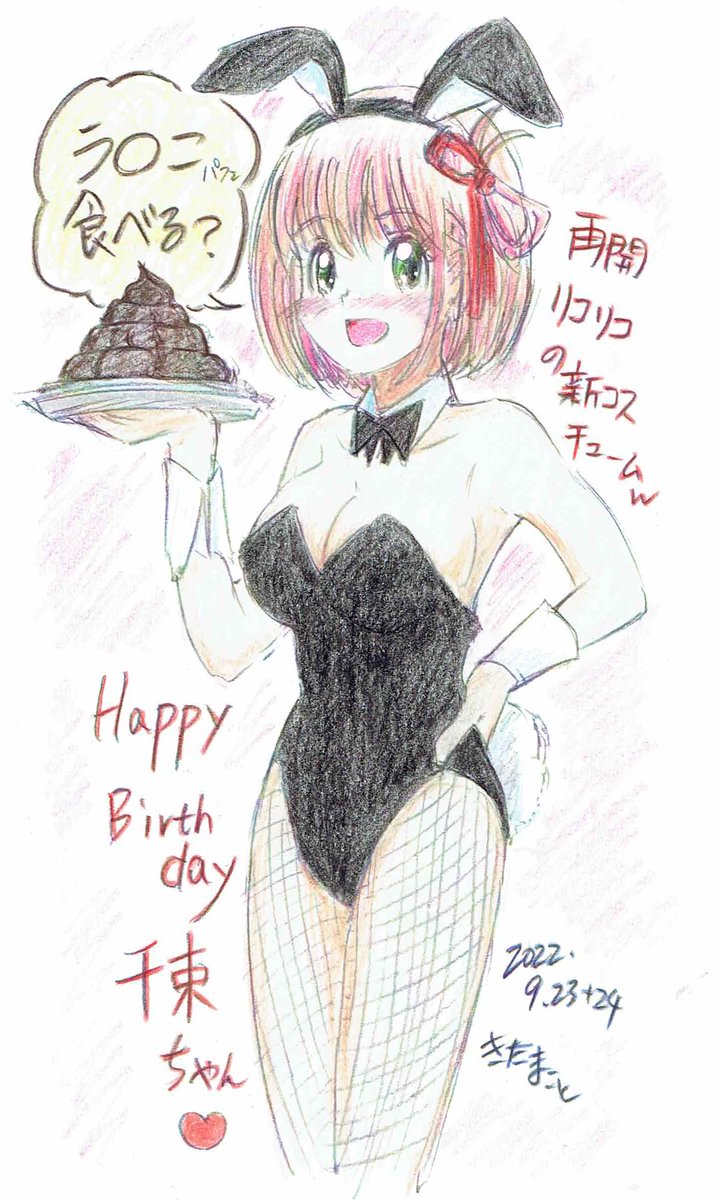 #錦木千束誕生祭2022 「再開リコリコのコスチュームのバニー姿でう〇こパフェを運ぶ #錦木千束 ちゃん」の線画に色鉛筆で彩色しました💕#錦木千束生誕祭2022 #リコリス・リコイル #リコリコ #バニーガール