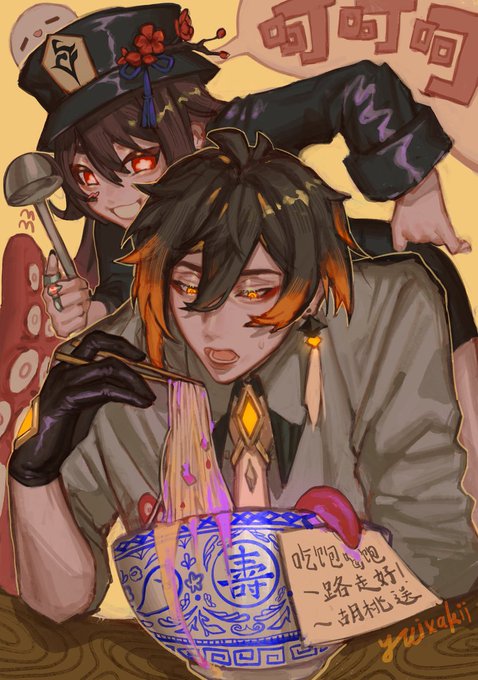 🐙🍜❔ Happy (belated) birthday Zhongli ! #GenshinImpact #genshinimpactcc #HuTao #原神 #鍾離生誕祭2022 #鍾離 #胡桃