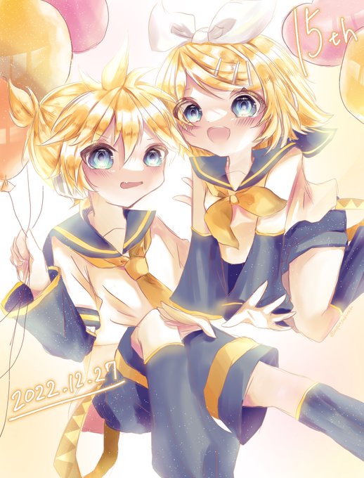鏡音リンレン誕生日おめでとう!❤ #鏡音誕生祭2022 #鏡音生誕祭2022 #鏡音リン誕生祭2022 #鏡音レン誕生祭2022 #鏡音15周年 #鏡音15th #鏡音リン #鏡音レン #VOCALOID #イラスト #illustration #rkgk #落書き