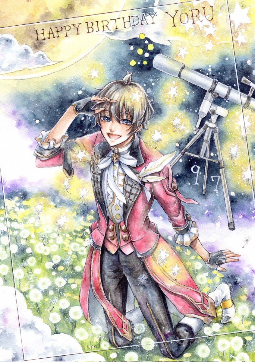 よるよる25歳おめでとう🌙🥂 穏やかで優しい頑固者という本質はそのままに、自らの歩幅で前進し続ける姿を尊敬しています。月面観測&ルミナ、素敵でした✨ 更なる活躍を楽しみにしています! 昨年の絵をあたかも今年描いたように載せる姿勢をお許しください… #長月夜誕生祭2021 #長月夜生誕祭2021