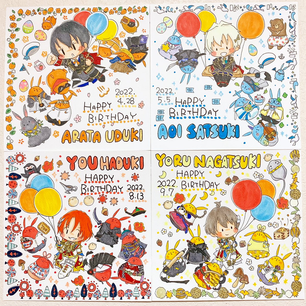 年中さん、全員今年のお誕生日を迎えましたね!おめでとう!! 2022年も、年中さんが大好きです🌸🎏☀️🌙 #卯月新生誕祭2022 #皐月葵生誕祭2022 #葉月陽生誕祭2022 #長月夜生誕祭2022