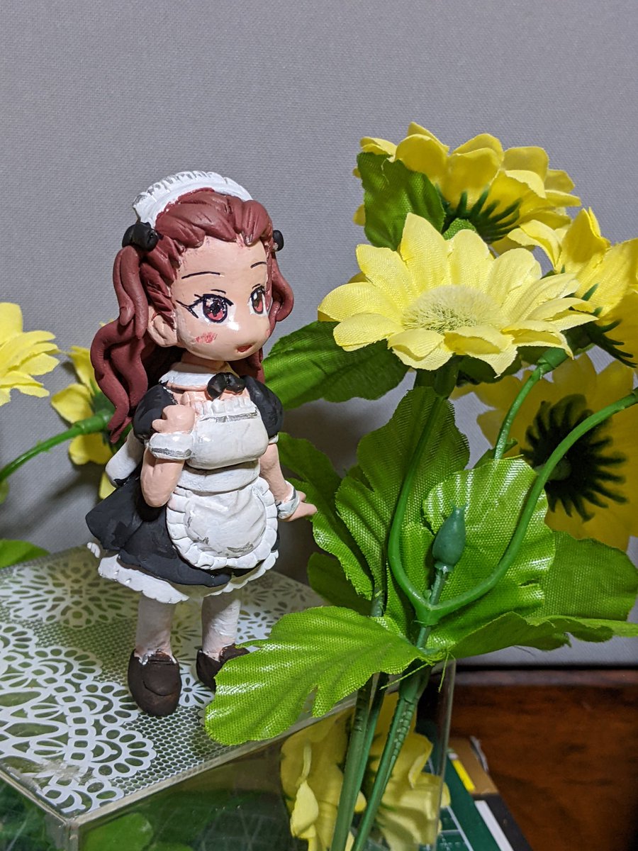 出来たてホヤホヤの新作関ちゃん造形でBirthdayを締めくくりです。ラブリーメイド特訓前のクラシカルでキュートな衣装でミニマムに造形しました。改めてHappyBirthday♪ #関裕美生誕祭2022 #関裕美誕生日