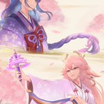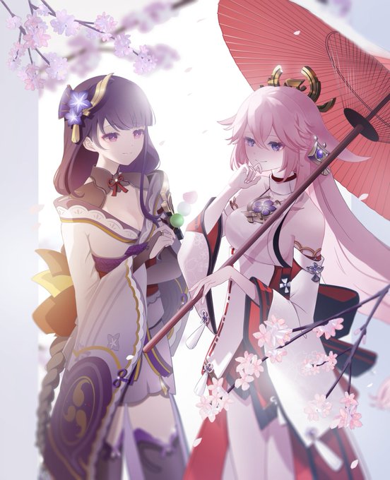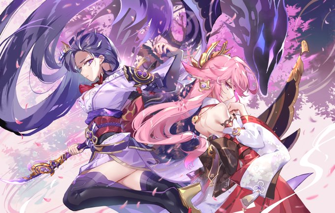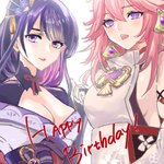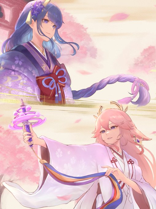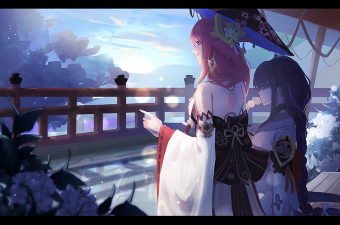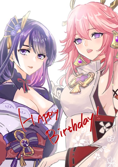 改めて影神子お誕生日おめでとう! お気に入りの二人なのでこれからも仲睦まじくしてほしいね。・:*+.\(( °ω° ))/.:+ 今日はゆっくり二人だけの時間を楽しんでほしいね! 今年の誕生日絵のも後々作りたい #原神 #Genshin_Impact #雷電将軍生誕祭2023 #八重神子生誕祭2023 #シャドーボックス