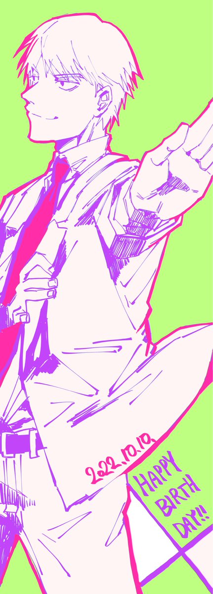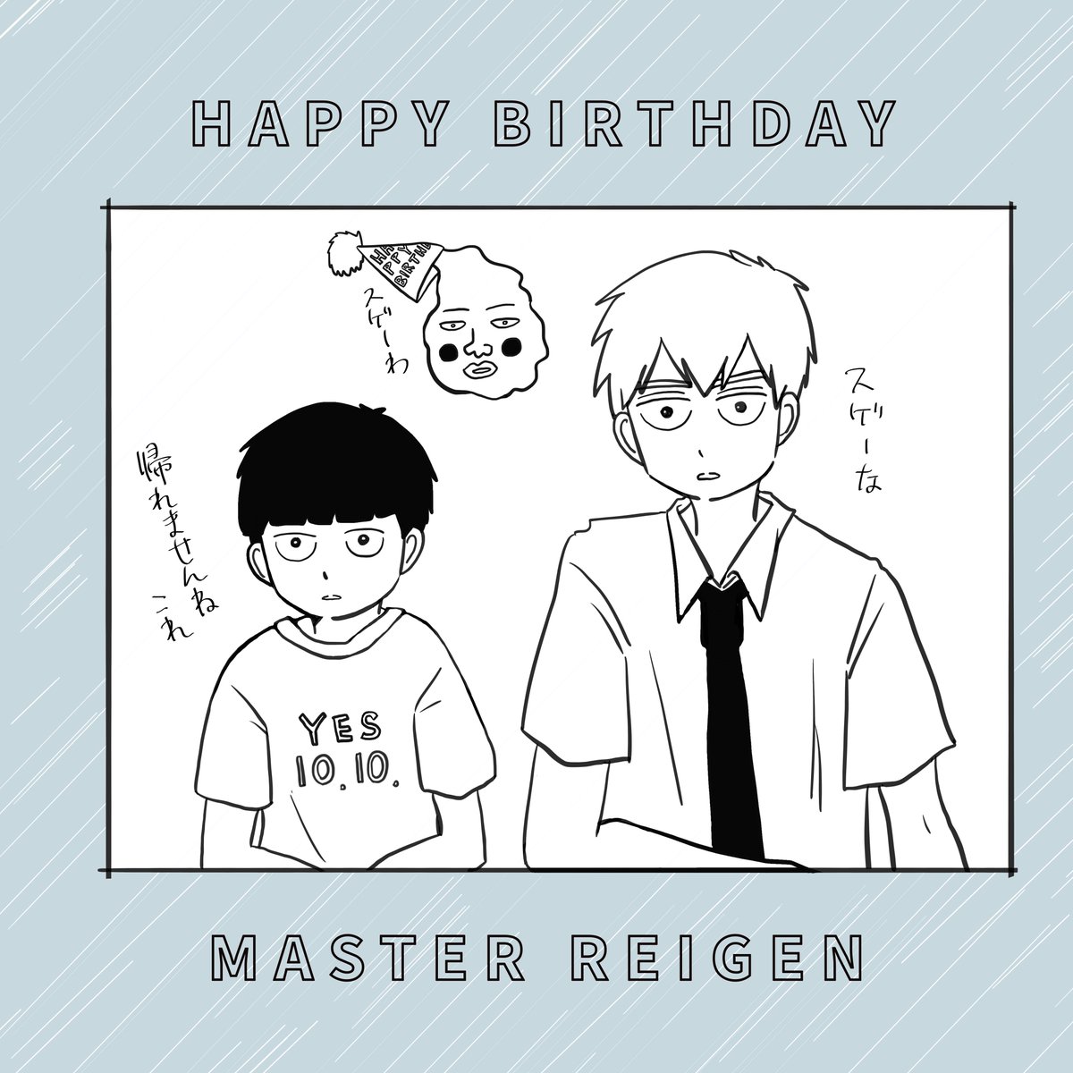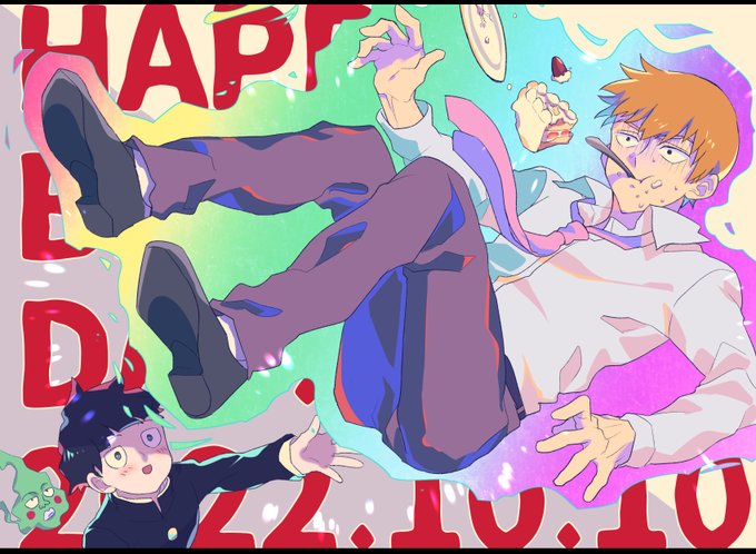 過去のシショ誕絵☺️毎年お祝いできて嬉しい 平和に心から感謝…🙏✨ 1枚目はこの年の10月10日にリアルで台風来てて今日相談所でパーティーやってたら大変だろうな〜って #霊幻新隆生誕祭2022 #霊幻新隆誕生祭2022