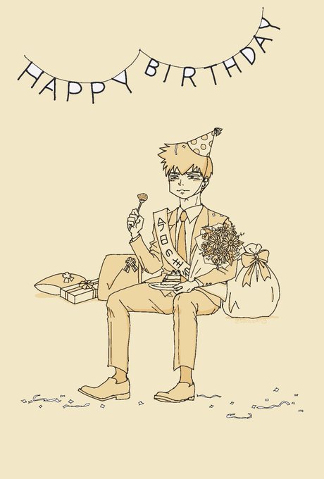 (年齢操作注意)本編+10年後にしてみんなからお祝いされるようになって10回目の世界線。あなたがこの先も大切な人たちに祝福され続けますように。 #霊幻新隆誕生祭2022 #霊幻新隆生誕祭2022
