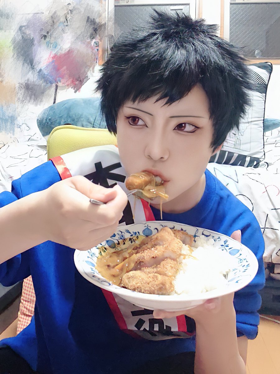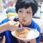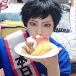 【コスプレ注意】 #風間蒼也誕生祭2021 風間さんおめでとう🎊🎊 カレー(諸事情でカツは用意できんかった)でお祝いやー! ちゃんとワートリTシャツやで□□□ いちさんに撮ってもらった再掲画像と一緒に🥰