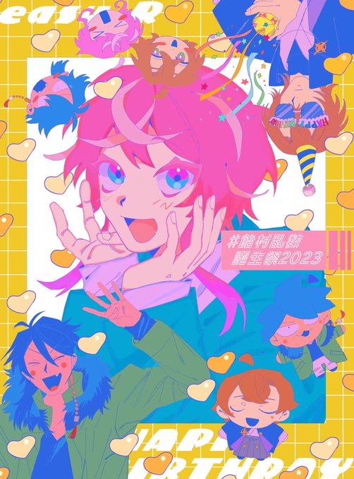 #飴村乱数誕生祭2023 #飴村乱数生誕祭2023 乱数ハッピーバースディ❣️🍭🥳🎉 クラクラするような甘〜いピンクの中に漂う儚さが魅力でもあるマイポセのリーダー❣️ 帝統、げんちゃろ、ポメ女、センターGUYが守るから、乱数は絶対助かる‼️ これからも先へ…先へ🌠🌝
