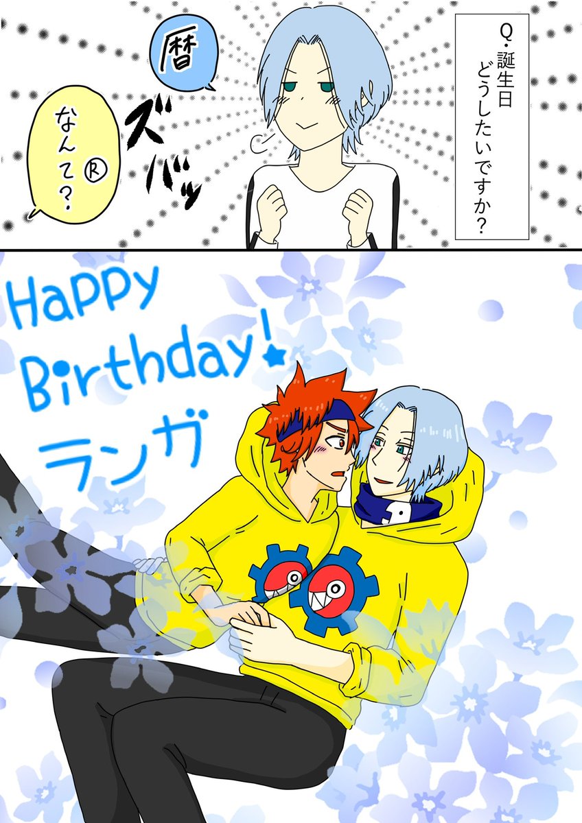 「ランガァァ!バースディ♪バースディ♪バ・バ・バ・バ・バースディ!!!✨」 「暦!ありがとう!これからも俺とずっと一緒に滑ってくれる?」 「ったりめーだろ!」 おめでとうランガ🥳🥳🎉🎉🎉2人で無限に仲良くしててくれ‼️ #SK8どーる部 #馳河ランガ誕生祭2022 #馳河ランガ生誕祭2022