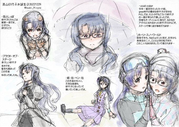 ちょっと遅れたけど、紗代子お誕生日おめでとう~! 何描こうか迷ったから、とりあえず片っ端から描いて、ついでに担当P特有の早口語りをしてしまった… 今年もたくさんの良い紗代子が見られました、感謝! #高山紗代子生誕祭2022 #高山紗代子誕生祭2022