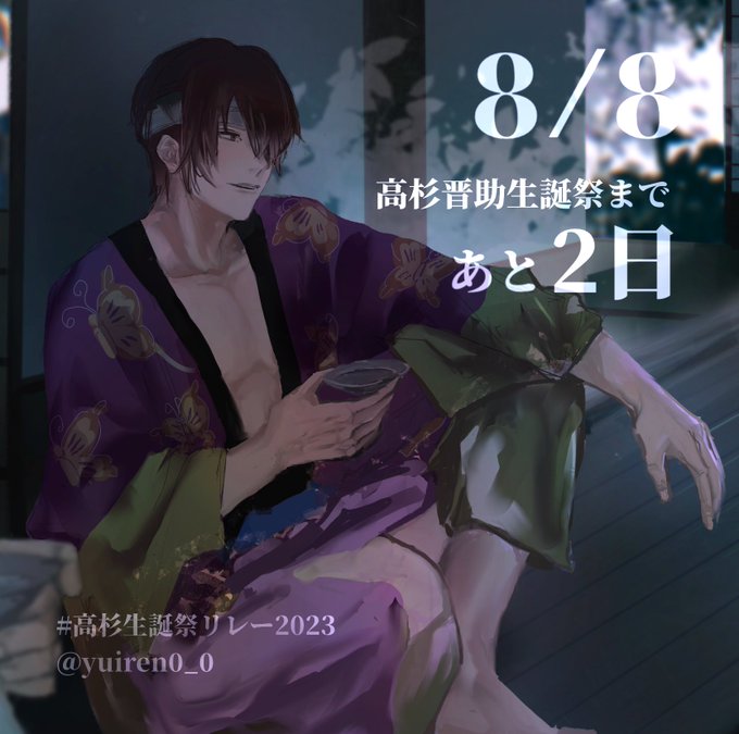 【生誕祭カウントダウン企画】 高杉晋助生誕祭まであと2日! 銀さんと盃を呑み交わしてる高杉さんが見たい😭 次回ラスト!!! Next▶︎▶︎あんみつ(@tksgsikakatan) #高杉生誕祭リレー2023 #高杉生誕祭2023