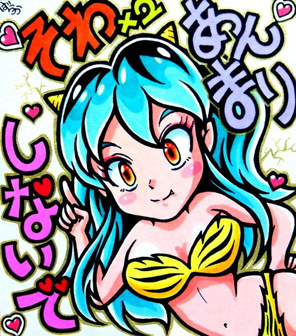 ミニ色紙に #うる星やつら から #ラムちゃん を描きました\(^o^)/ 金キラペンでデコレーションしたのでキラキラです(^^) #うる星やつら2022 #高橋留美子生誕祭 #高橋留美子生誕祭2022