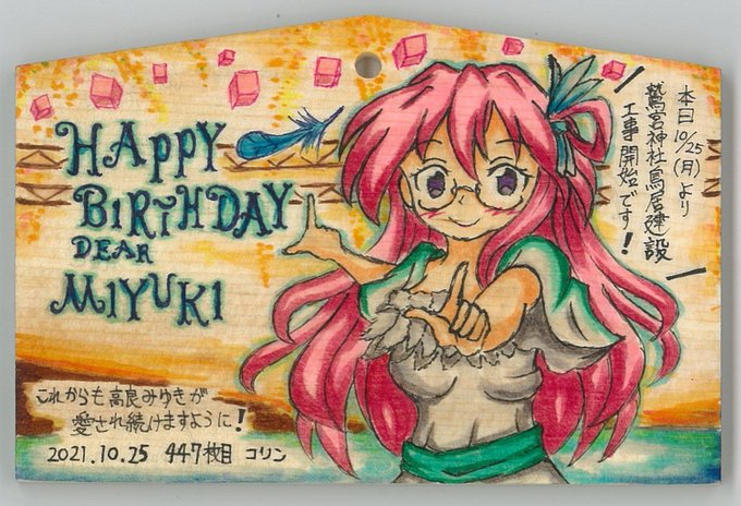 10/25はらき☆すた.高良みゆきさんの誕生日なので、Aqours『DREAMY COLOR』衣装を鷲宮神社の絵馬に描いて奉納しました。これからも愛され続けますように!そして、今日から神社の鳥居再建工事が本格的に始まります!(・∀・) #らきすた #lovelive #高良みゆき生誕祭2021
