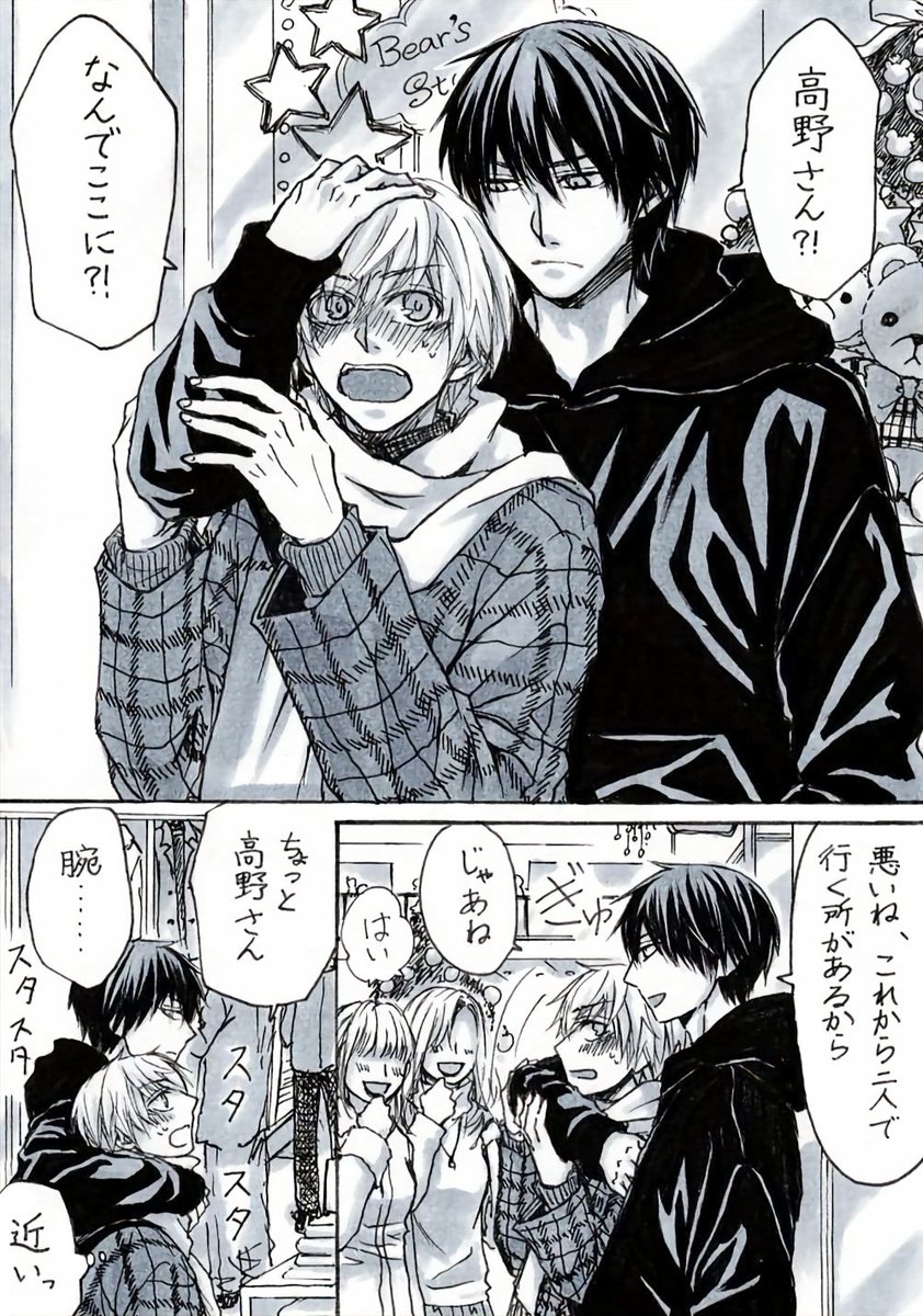お題箱より【自分がナンパされていることに気がついていない小野寺を颯爽と奪い返す高野】(1/2) 高野さんの誕生日と併せて描いてみました! かなり遅刻ですが、高野さんお誕生日おめでとうございます!! #高野政宗誕生祭2022