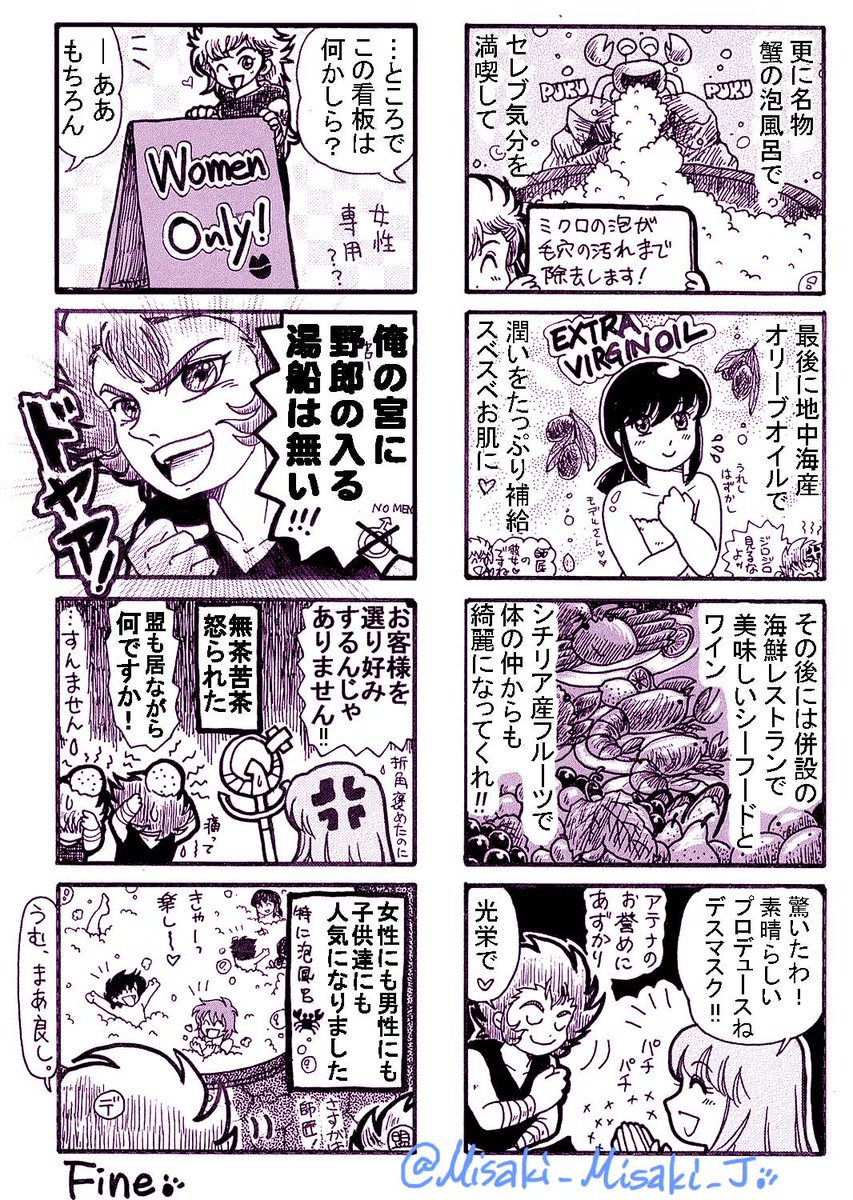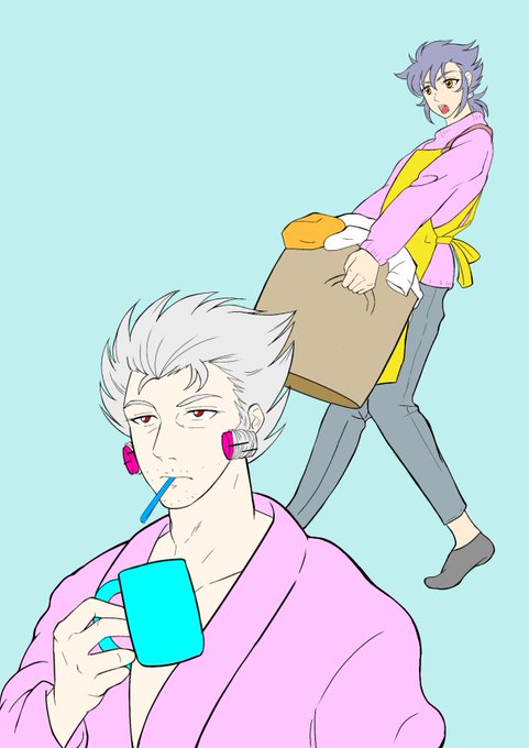 #蟹座のデスマスク生誕祭2022 #髪の毛座の盟生誕祭2022 「あッ、やっと起きた。今夜はパーティーですよ!洗濯物を干したら市場に行きますからね!」 「あぁ。」 「髭も剃って下さいよ‼️」 「うるせ、お前は俺のママンか⁉️」
