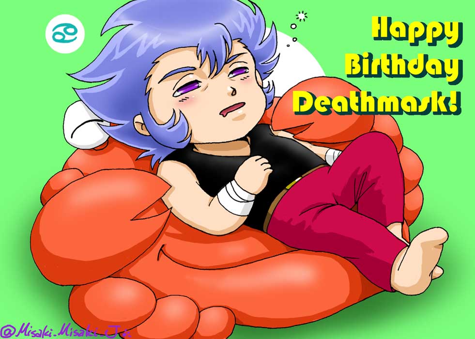 デッちゃん、おめでとう!!!🎊🎊🎊 タグ、お借りしましたよ🦀✨✨ (ザルツウェルツさんの御本に寄稿したイラストです。 #蟹座のデスマスク生誕祭2022 #キャンサーのデスマスク生誕祭2022 #髪の毛座の盟生誕祭2022