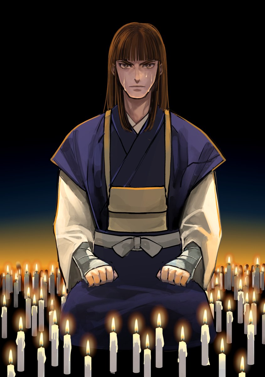 5日が #サムライトルーパー の朱天の誕生日だったと教えて頂いたので描いてみよ、と。誕生日といったらロウソク。ロウソクの本数は…と年齢を検索してみたら472本!?ごめん、無理だった #鬼魔将生誕祭2023