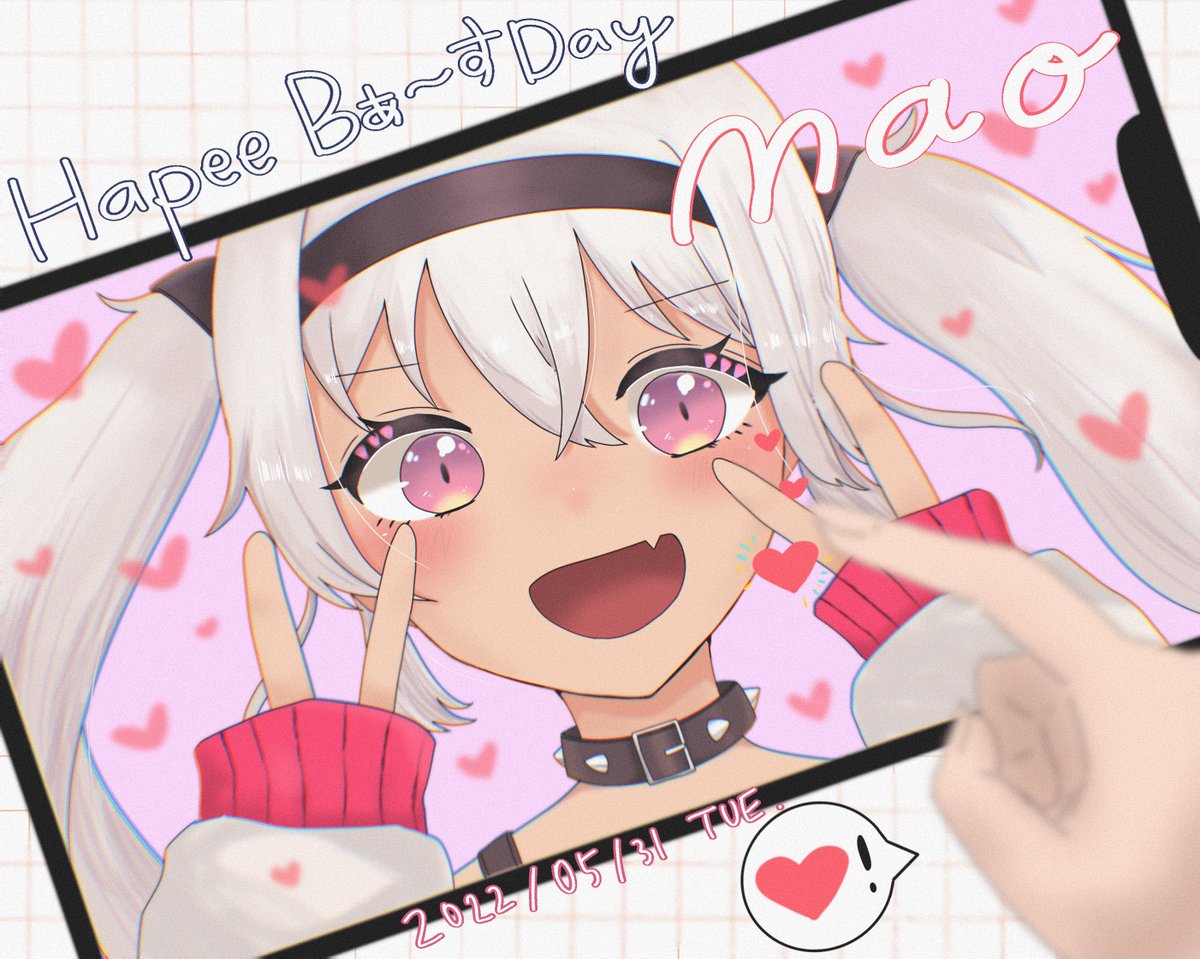 マオちゃんお誕生日おめでとー! なかなか配信はリアタイ出来ないけど、アーカイブ楽しみにしています! これからも応援してます! 無理せずに頑張ってね! 峰岸 伊紡より #マオのお絵描き帳 #魔使マオ生誕祭2022 #イラスト