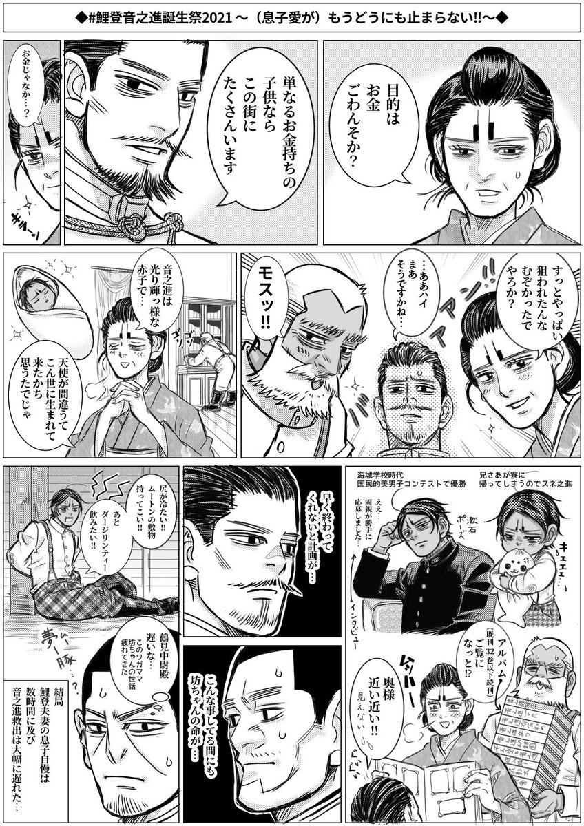 国より息子を選び助けに走ったモスパパは軍人としては間違ったかも知れませんが、親としては正しかったかと。音之進はその愛情を受け部下想いの指揮官に成長したのだから。 🎏パパ&ママ、強くて情に厚く美しい音を生み出してくれて有難う😭 #鯉登音之進誕生祭2021 #鯉登音之進生誕祭2021 #月鯉ハピバ