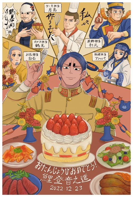 では改めて……鯉ちゃん136歳のお誕生日おめでとー!!!🎉🎉🎉🎂🎂🎂 貴方の真っ直ぐなハートが私達ファンは元気付けられます いつまでも心も身体も健康でいてね…… #鯉登少尉生誕祭2022 #鯉登音之進誕生祭2022 #鯉登音之進生誕祭2022