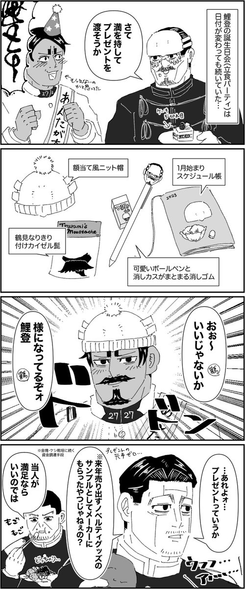 鯉登少尉お誕生日おめでとう!🎏月島さんと愉快な仲間たちがお祝いするイラスト、ギリギリ間に合った…🎉まっすぐ力強く生きる貴方が大好きです!! #鯉登音之進生誕祭2022 #鯉登音之進誕生祭2022 #鯉登少尉生誕祭2022