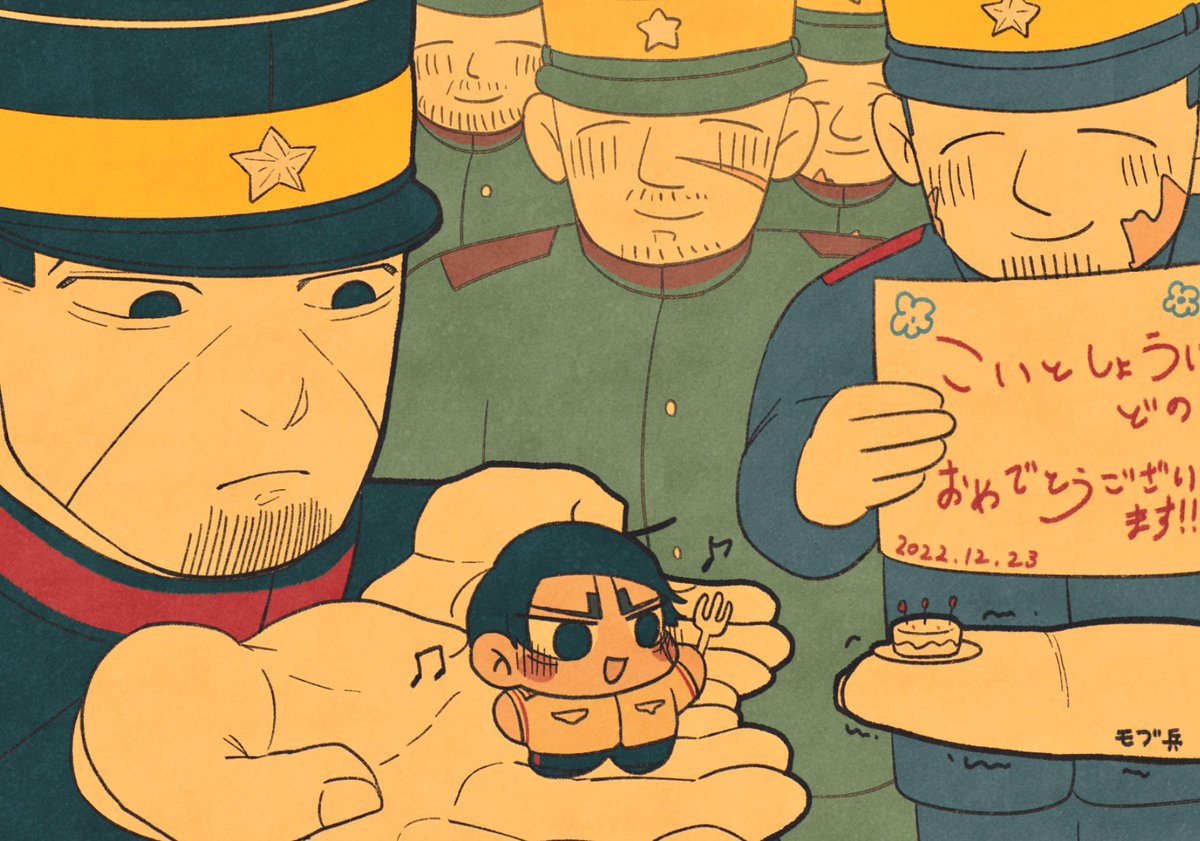 鯉登少尉お誕生日おめでとう!🎏月島さんと愉快な仲間たちがお祝いするイラスト、ギリギリ間に合った…🎉まっすぐ力強く生きる貴方が大好きです!! #鯉登音之進生誕祭2022 #鯉登音之進誕生祭2022 #鯉登少尉生誕祭2022