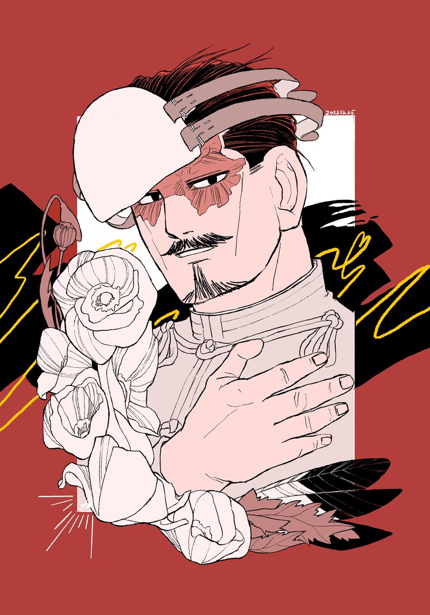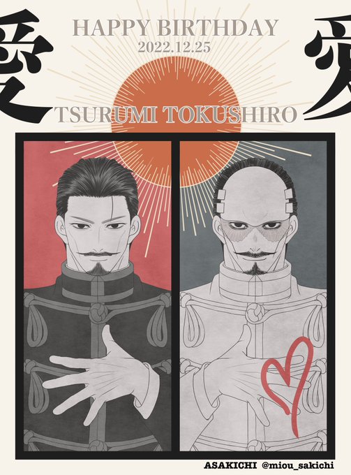 鶴見中尉殿、お誕生日おめでとうございます! 拙いながら今年もお祝い出来て恐悦至極😌 ほんのり物憂げですがご容赦。お祝いの気持ちは沢山込めました…! #鶴見篤四郎生誕祭2022 #鶴見篤四郎誕生祭2022 #鶴見中尉生誕祭2022 #鶴見中尉誕生祭2022