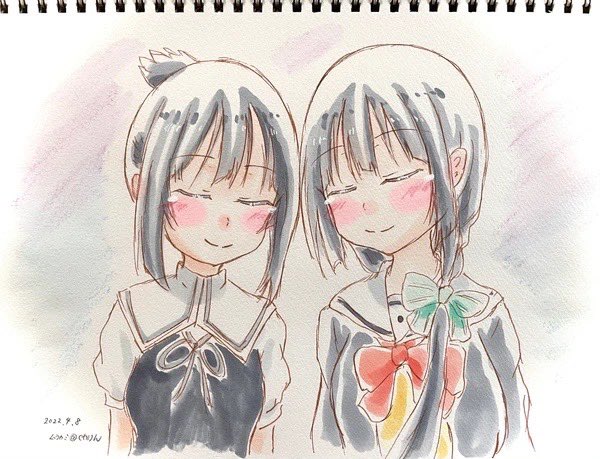 お誕生日おめでとう!! 今回は髪の塗り方や光の描き方、影などを前までとは変えて描いてみました。 勇者の会が実際に下2桁が4(月)8(日)だったのでシンパシーを感じ上に描きました。 #東郷美森生誕祭2023 #鷲尾須美生誕祭2023 #下手くそでも全員を祝ったら上手になる説 ①東郷美森 ②鷲尾須美