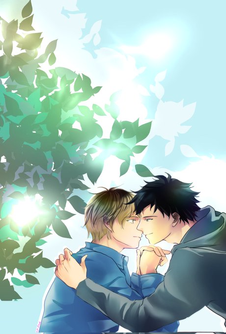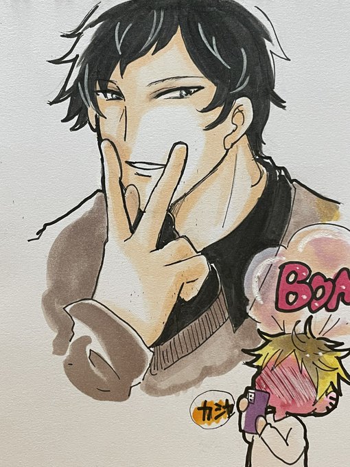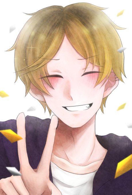 玄「柊、誕生日おめでとう。何かして欲しいことあるか?」 柊「んじゃピースしながら笑って欲しいな〜なーんて」 玄「…………これでいいか?」 #ギヴン #ギヴンファンアート #鹿島柊誕生祭2022 #鹿島柊 #柊