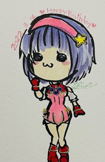 本日3月14日は麻宮アテナさんのお誕生日なので一年前のアンケートで歴代コスチュームNo.1決定戦でKOF'96のアテナさんに決定! 記念に神取徹さん(@ToworuKD)にリクエストでミニ色紙を昨年描きました リクエストありがとうございます! #麻宮アテナ生誕祭2022 #麻宮アテナ生誕祭 #格ゲーキャラ描こうぜ